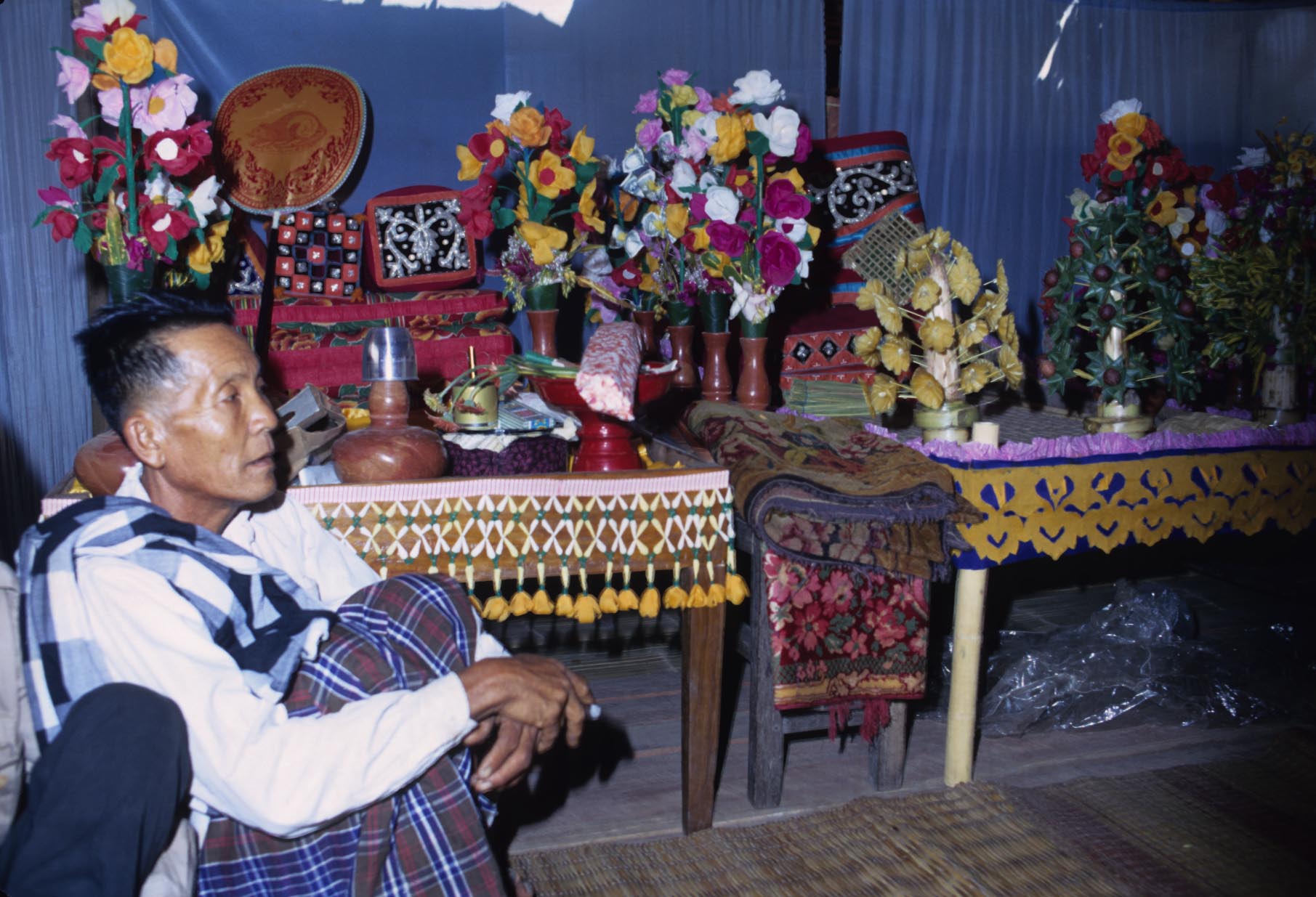 Ordination – some of the gifts (khrüang buat) associated with the ceremony, Ban Khapuang, Amphoe Mae Sariang, Changwat Mae Hong Son, Thailand, March 1968