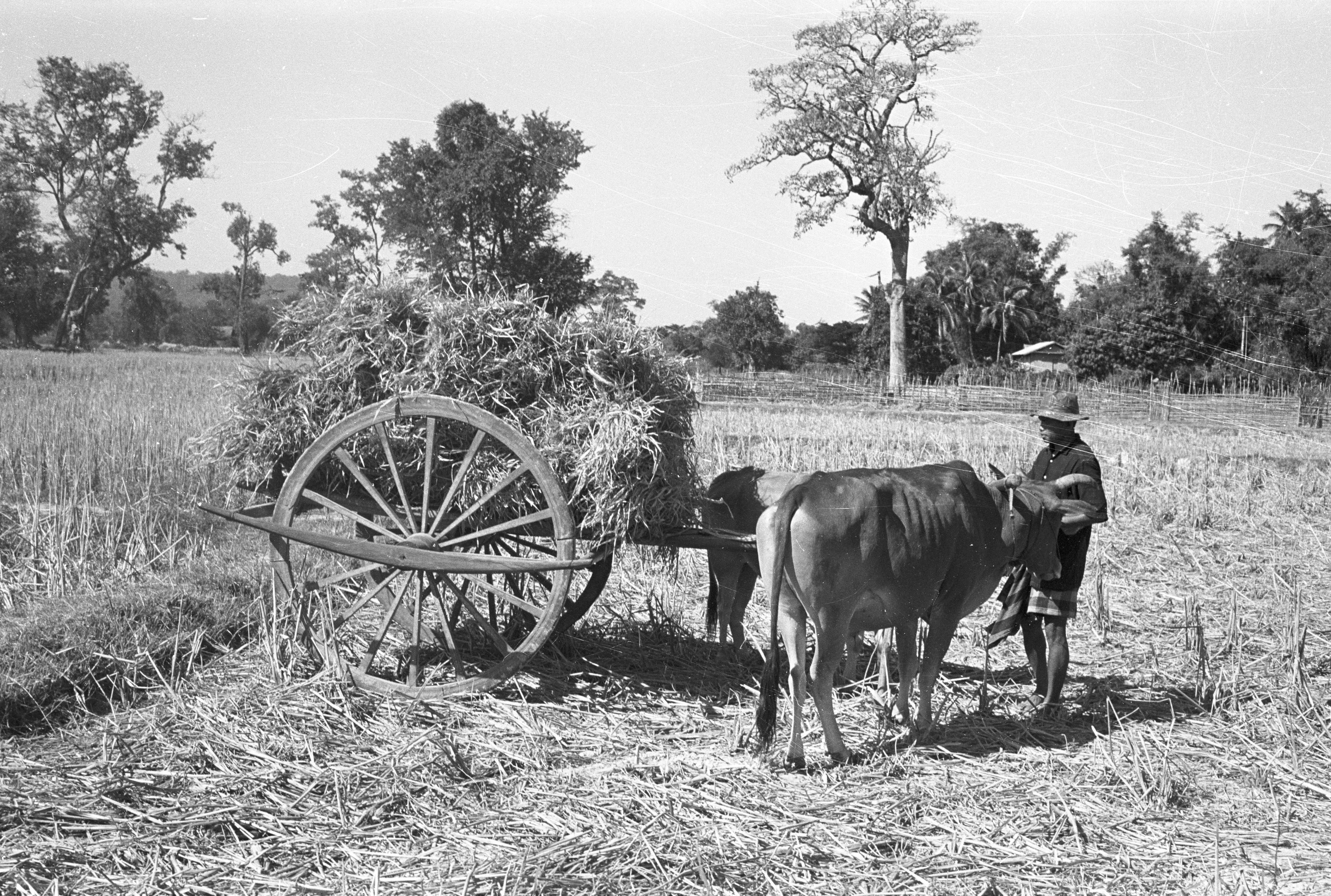 Cart carrying straw from field, Ban Nong Sung, Changwat Mukdahan, Thailand, November 1963