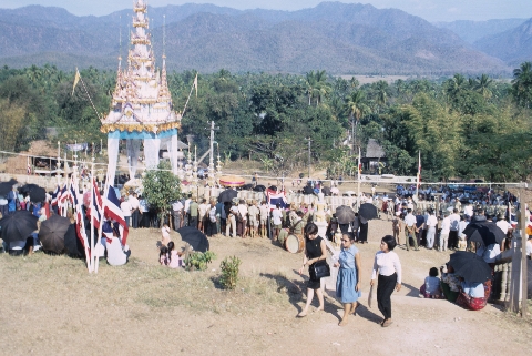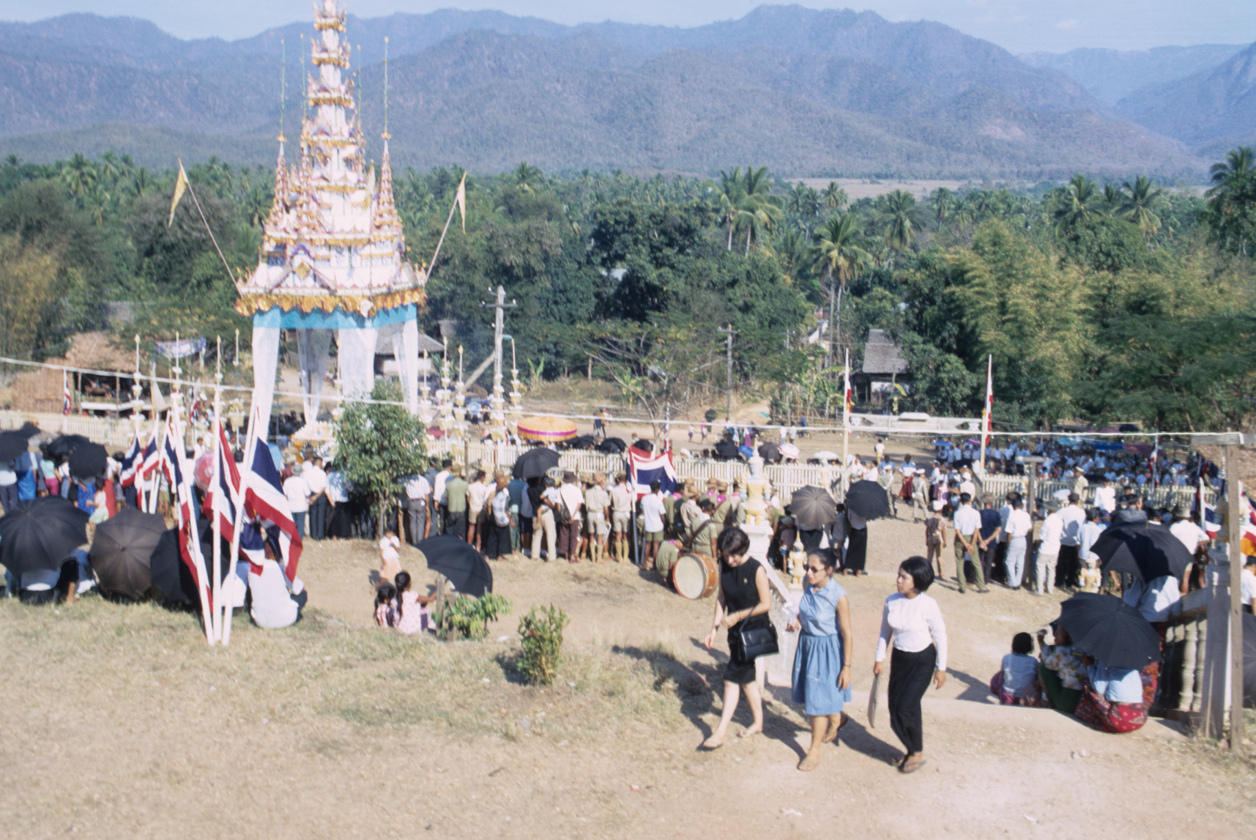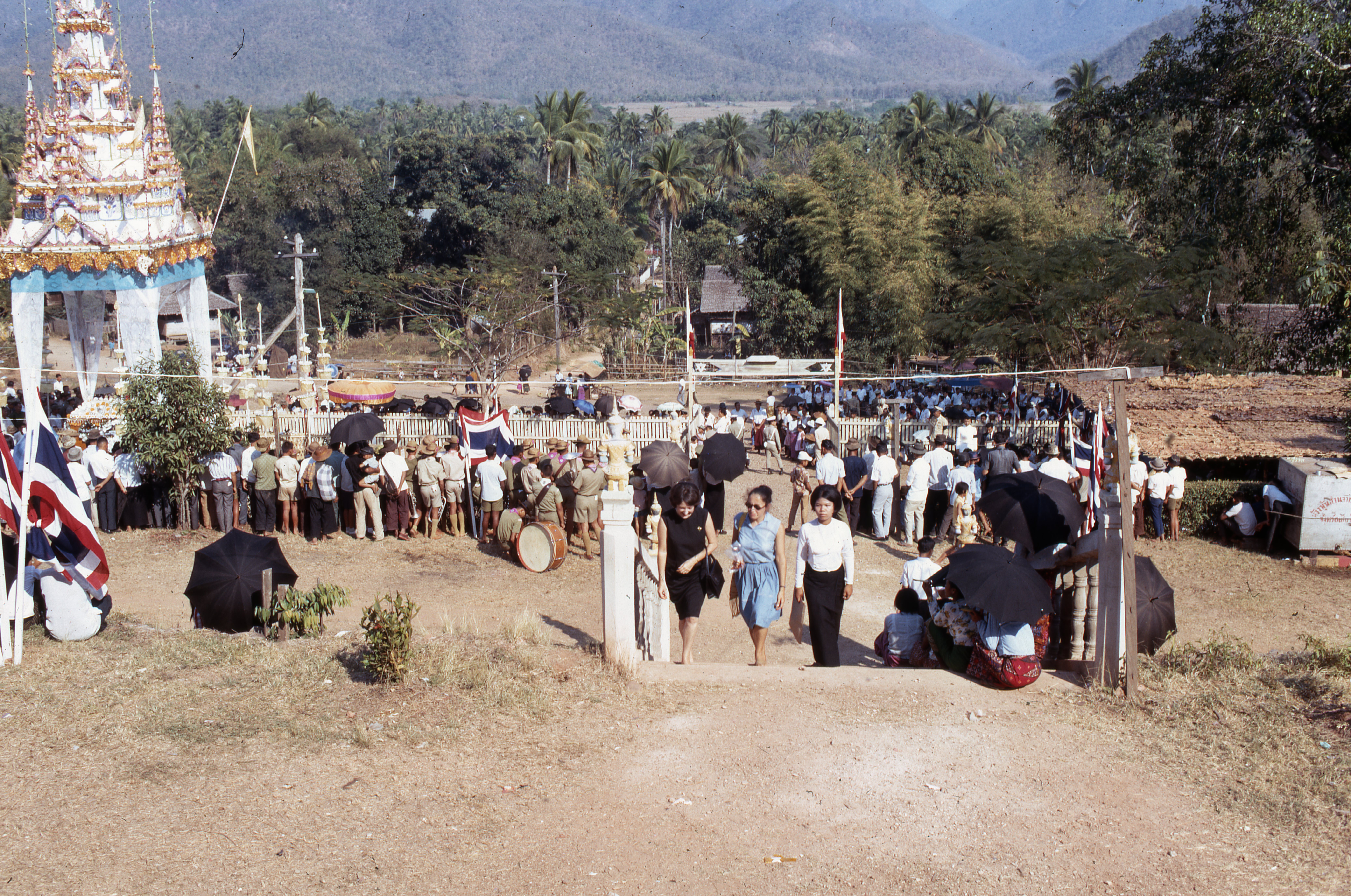 Funeral of late provincial abbot: Jane Keyes and Sheila Lehman, 2 photos, Mae Hong Son, Thailand, March 1968