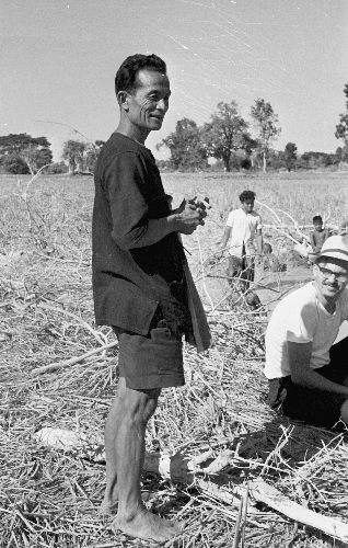 Headman and Charles F. Keyes in field, Changwat Maha Sarakham, Thailand, January 1964
