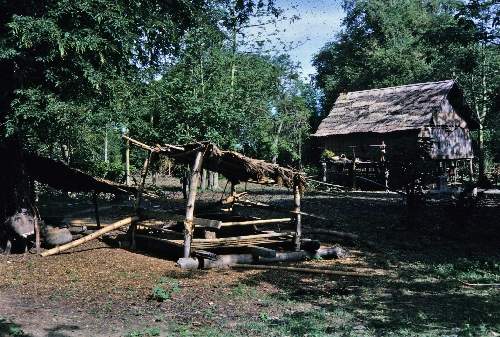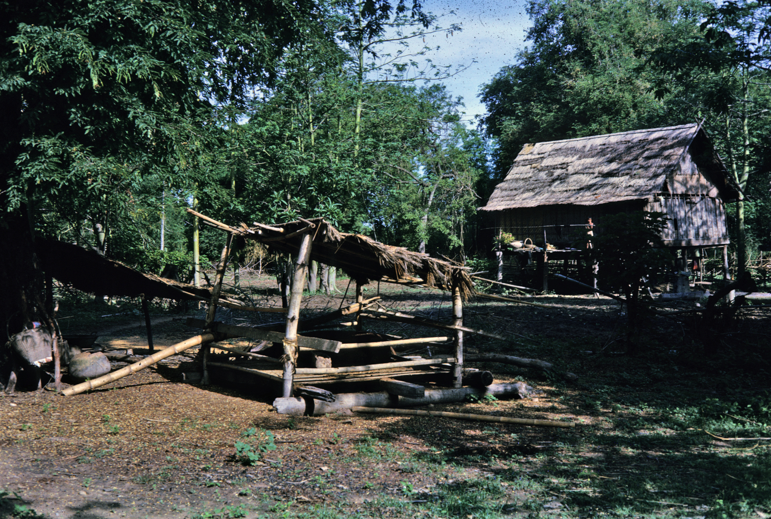 Pig pen at a house, Ban Nong Tun, A. Muang, Changwat Maha Sarakham, 1963 or 1964