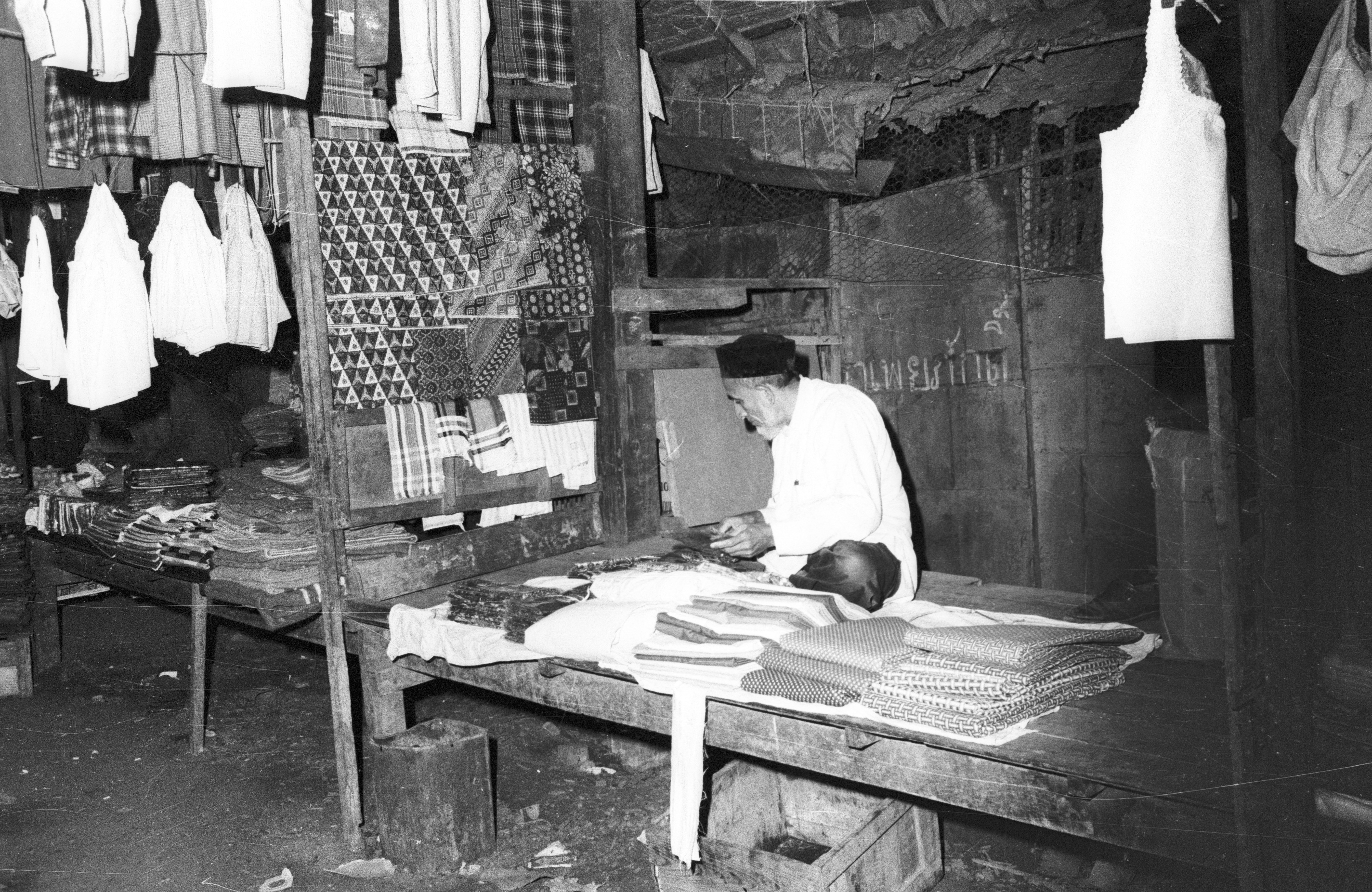 Market: Muslim shopkeeper, Amphoe Mae Sariang, Changwat Mae Hong Son, Thailand, February 1968