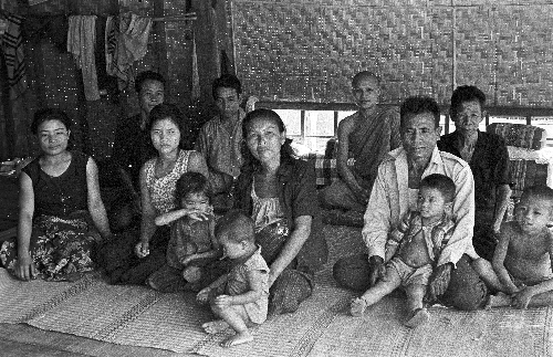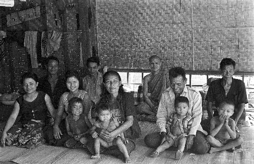 Village man's sister, brother-in-law and children, 2 photos, Changwat Maha Sarakham, Thailand, January 1964