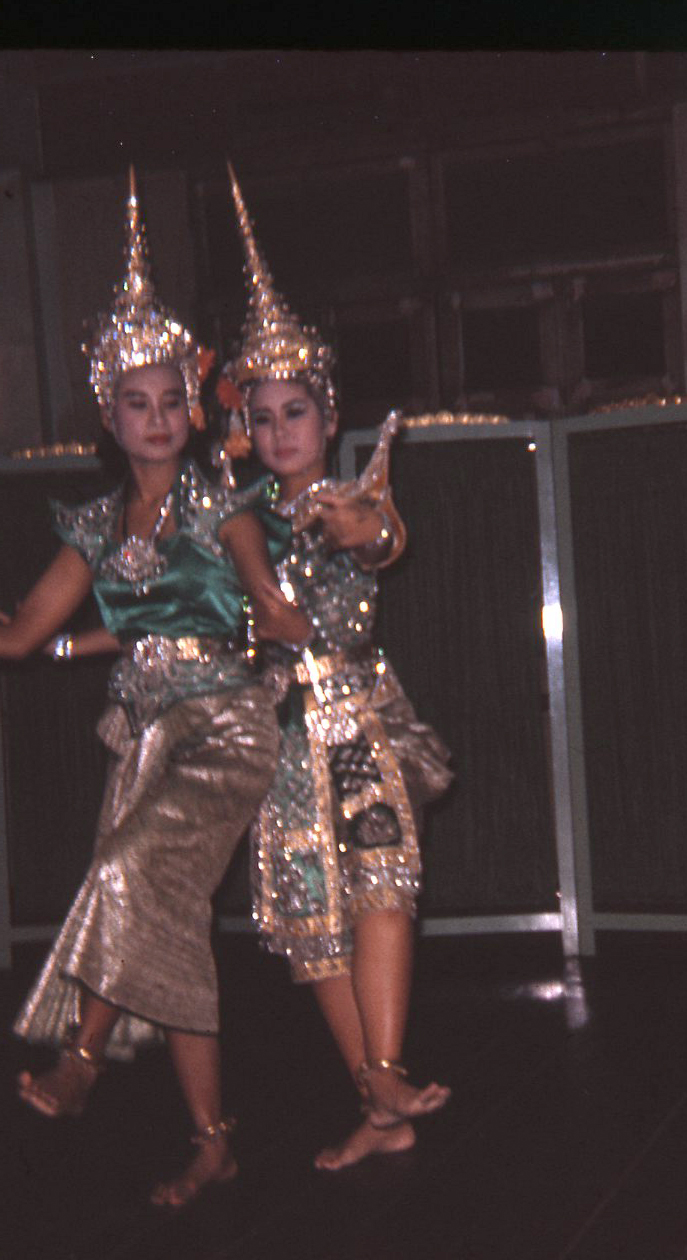 Two Thai women dancers in classical costumes, Krungthep (Bangkok), Thailand, December 1963