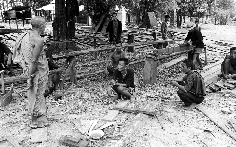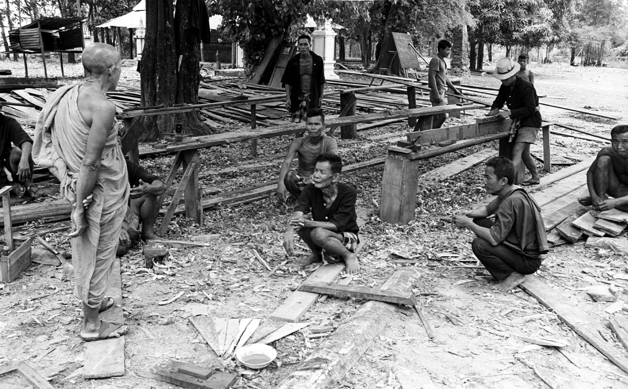 Monk supervising making of kuthi, Ban Nong Tun, Amphoe Muang Maha Sarakham, Changwat Maha Sarakham, Thailand, May 1968