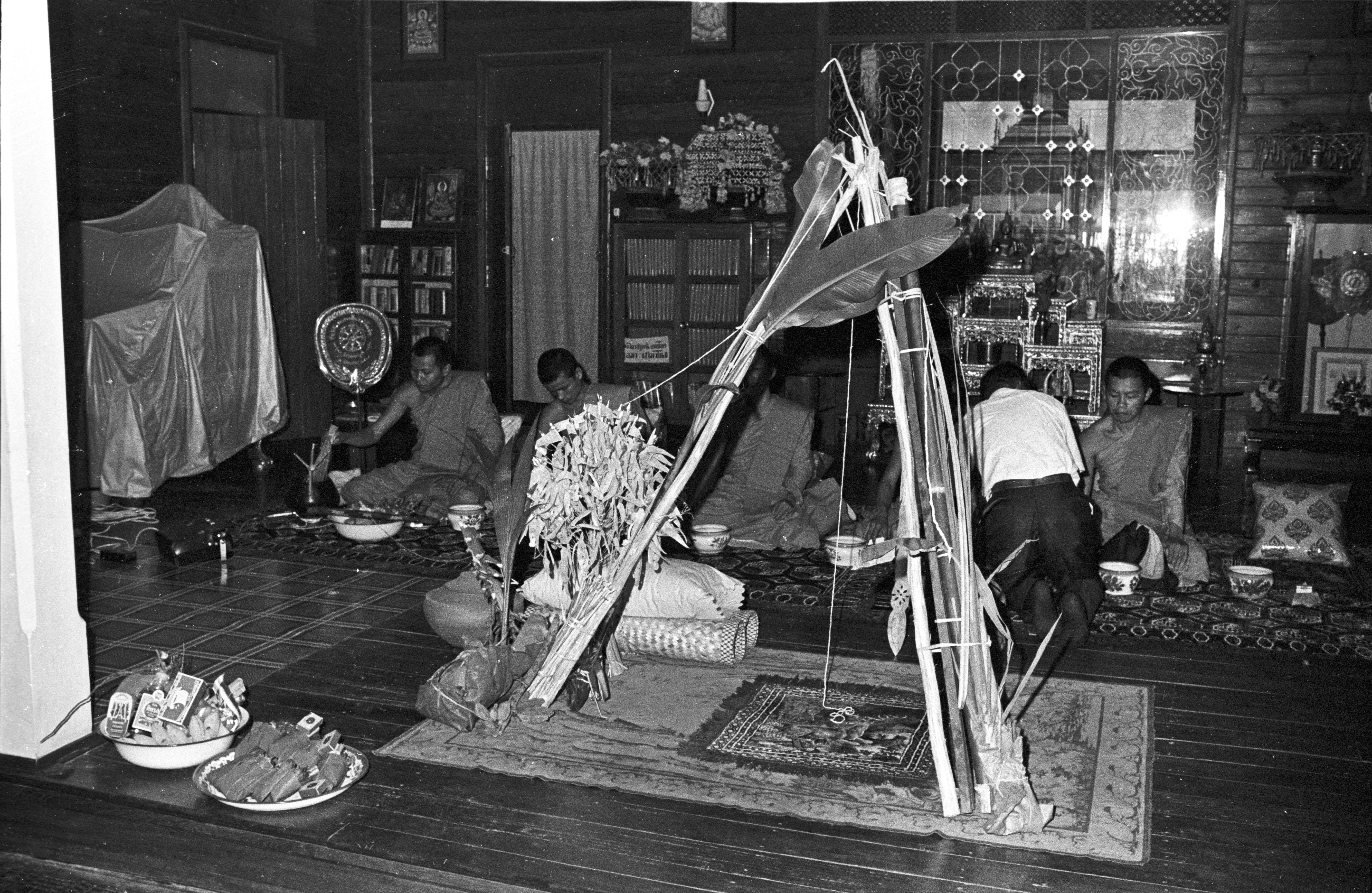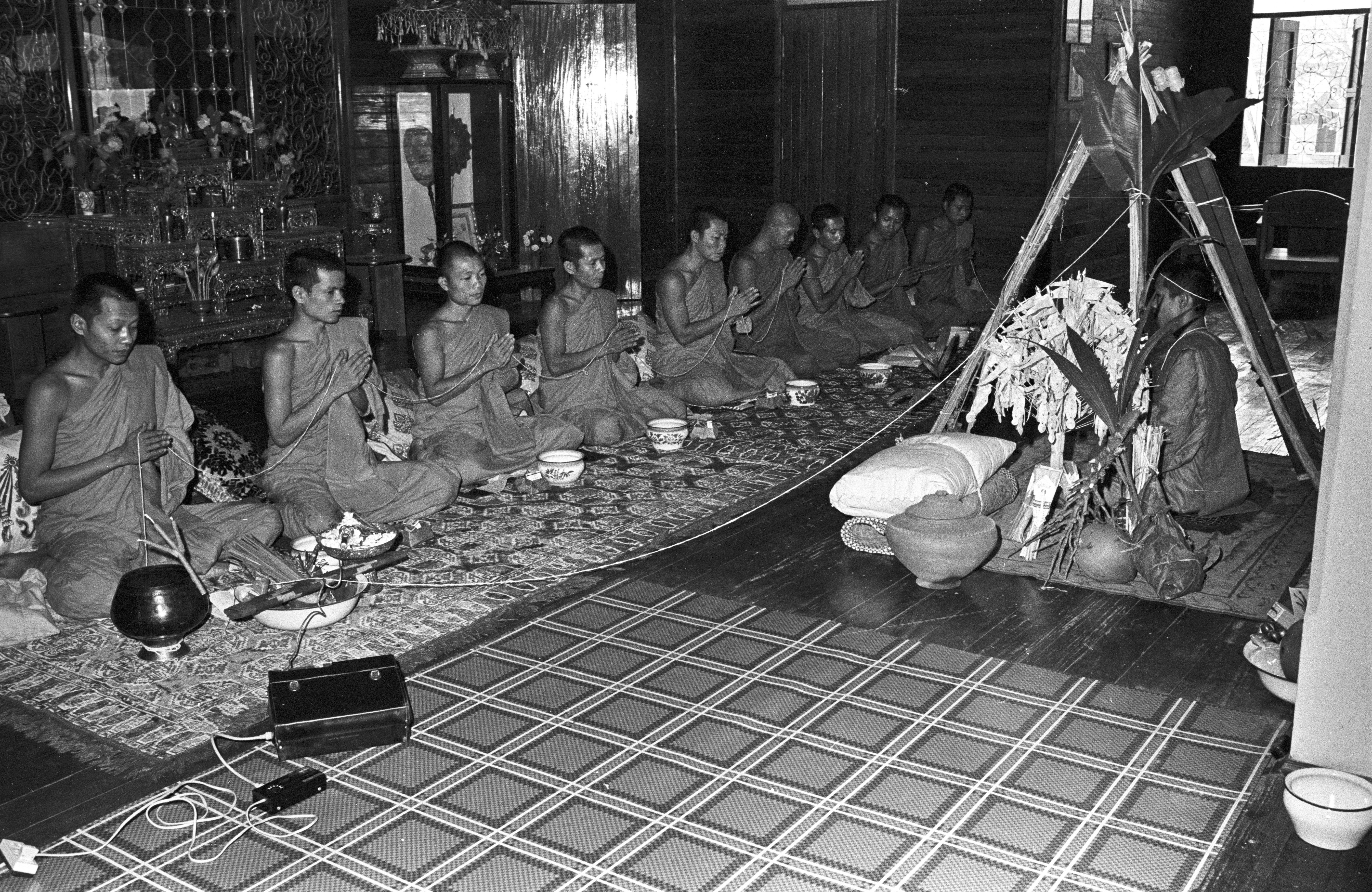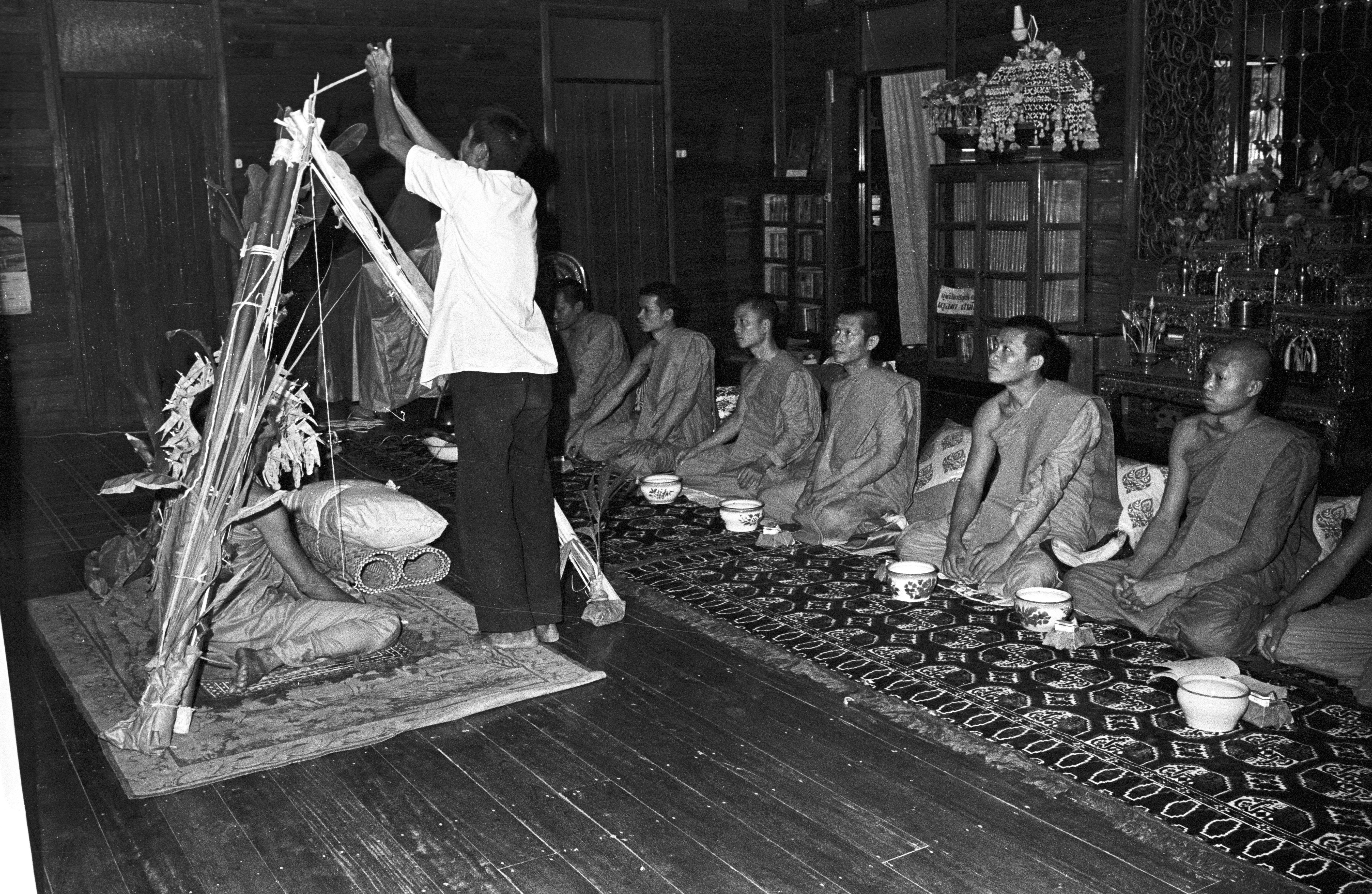 Wat Kittiwong: süp chātā (สืบชาตา), extending fortune ritual for phra mahā Kāēo, 10 photos, Amphoe Mae Sariang, Changwat Mae Hong Son, Thailand, April 1968