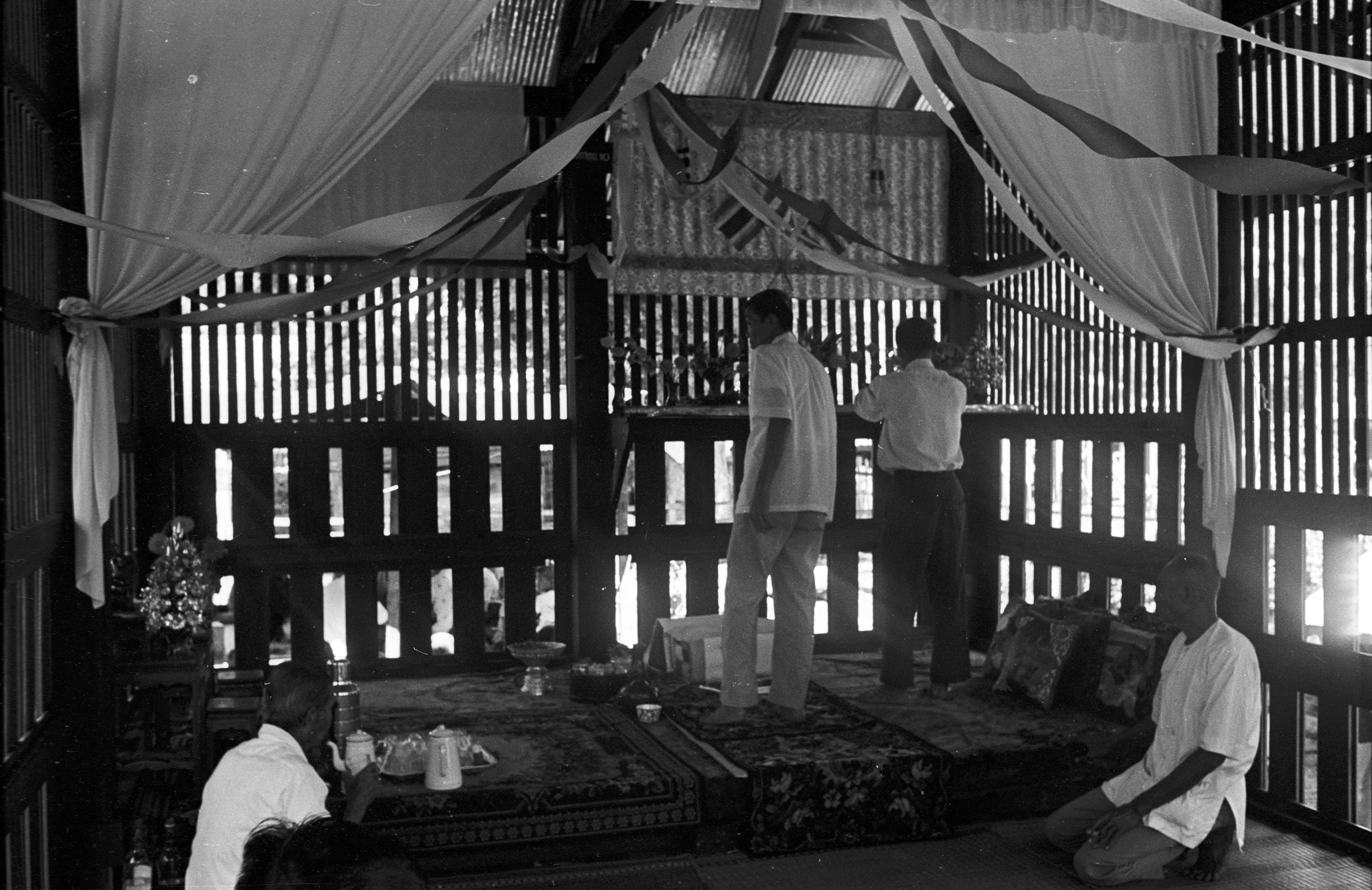 Dedication of Sān Čao, inside main shrine, 5 photos, Mae Hong Son Province, Thailand, November 1967