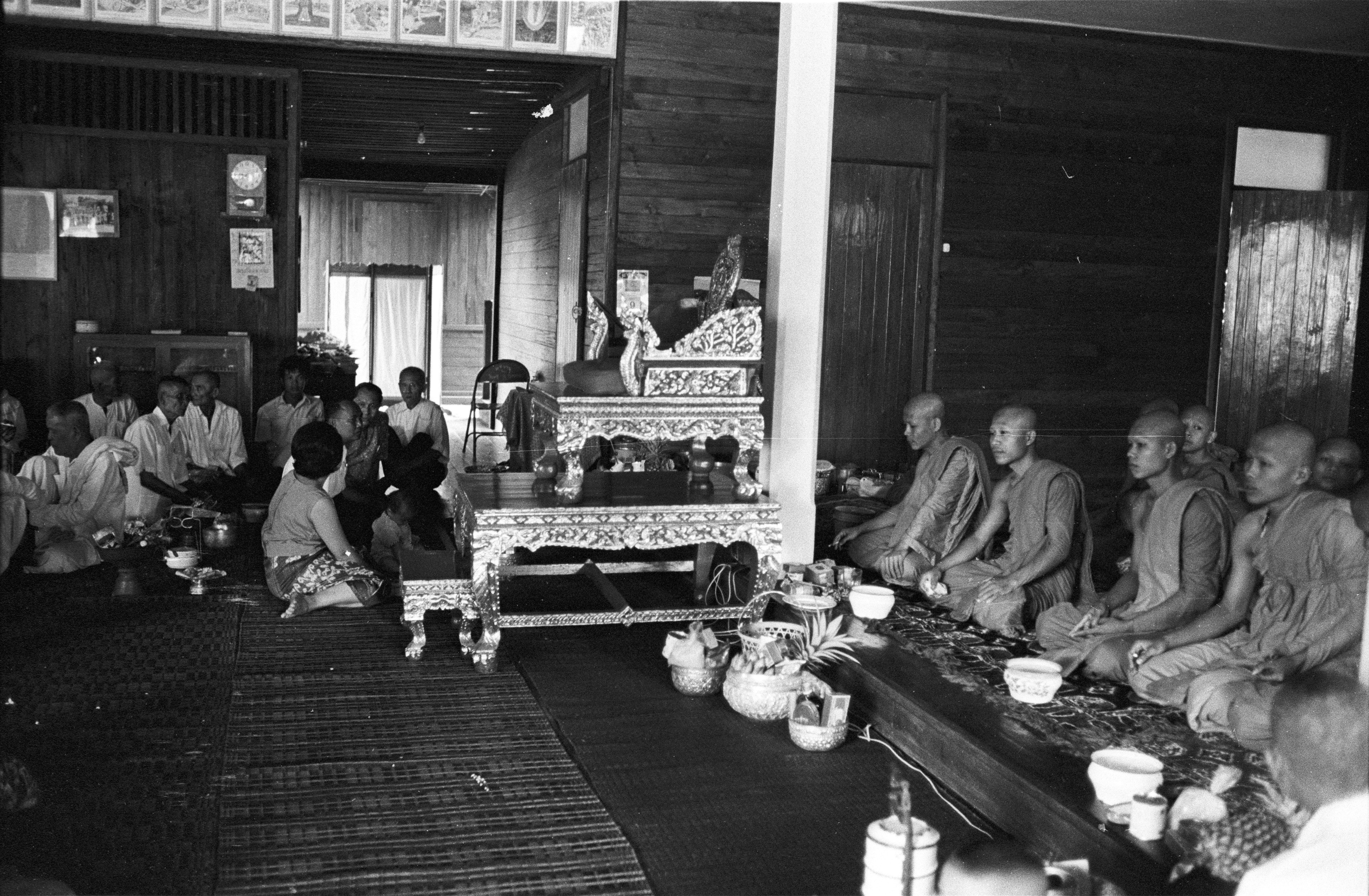 Wat Kittiwong: Beginning of Buddhist Lent ritual (khao phansā, เข้าพรรษา), 5 photos, Amphoe Mae Sariang, Changwat Mae Hong Son, Thailand, July 1968