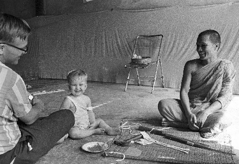 Biff (Charles Keyes), Nick Keyes, and Phra Mahā Seng, Ban Nong Tun, Amphoe Muang Maha Sarakham, Changwat Maha Sarakham, Thailand, May 1968