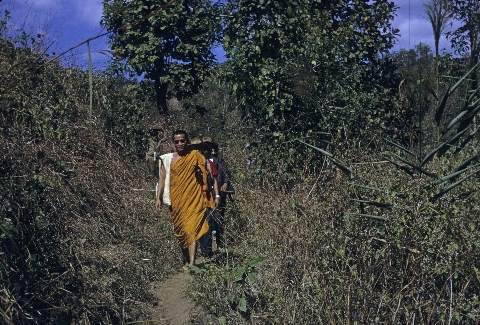 Trip to Bān Dong -- on trail: Biff (Charles F. Keyes) and others on trail, 2 photos, Mae La Noi, Changwat Mae Hong Son, Thailand, January 1968