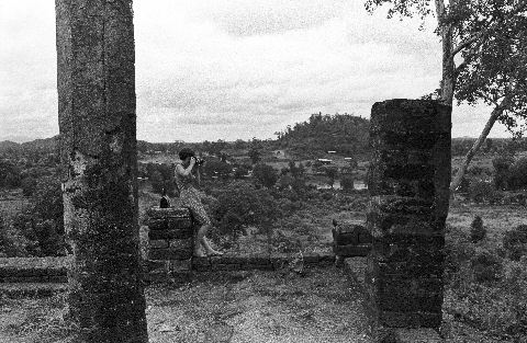 Jane taking photo of ruins, Amphoe Si Satchanalai, Changwat Phrae, Thailand, August 1968