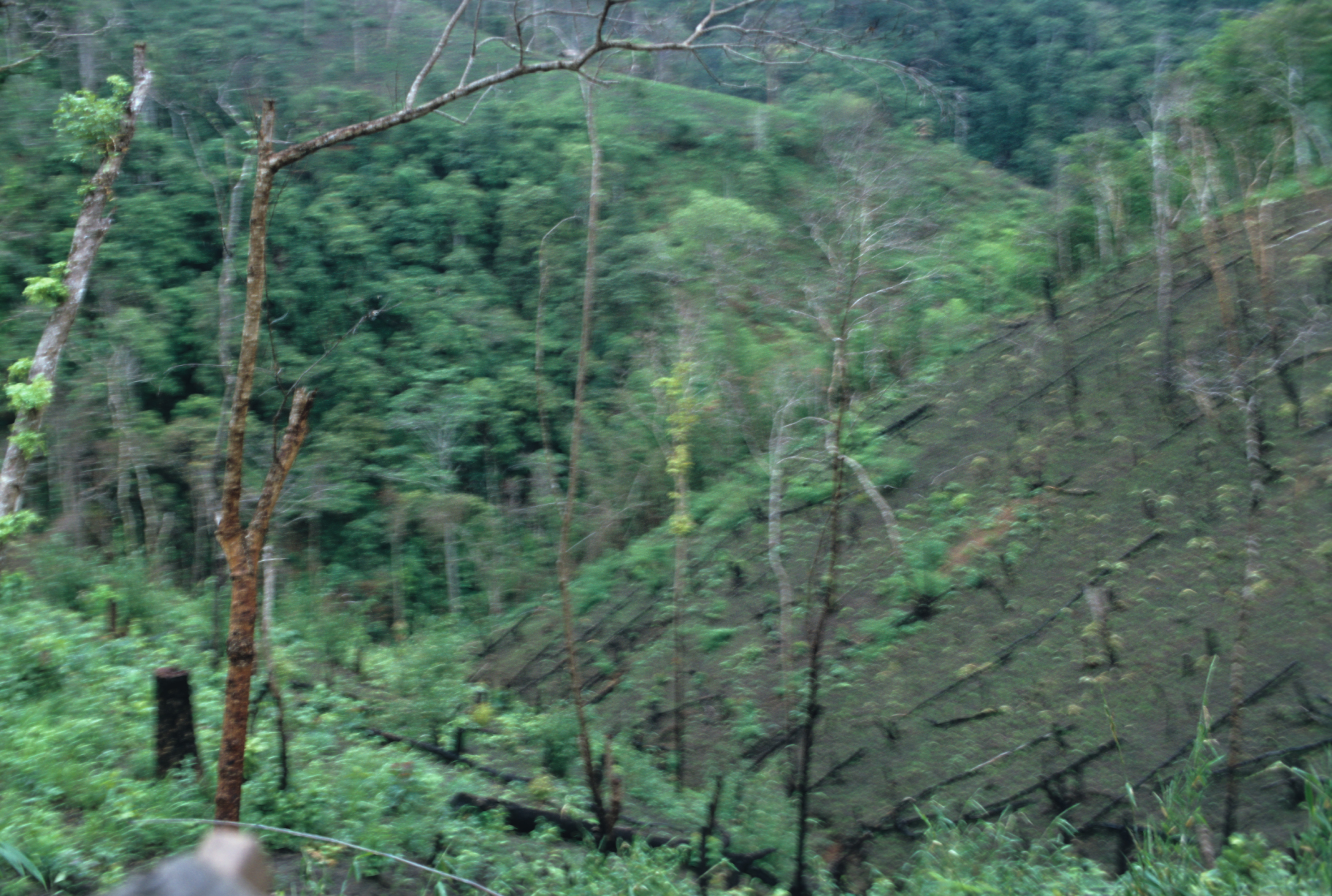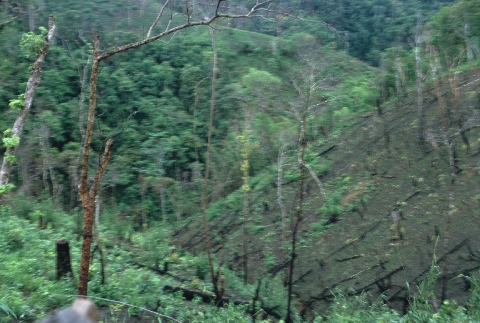 Newly burned swidden field (Karen), Ban Khun Mae Top, Thambon Ban Kat, Amphoe Mae Sariang, Changwat Mae Hong Son, Thailand, June 1968