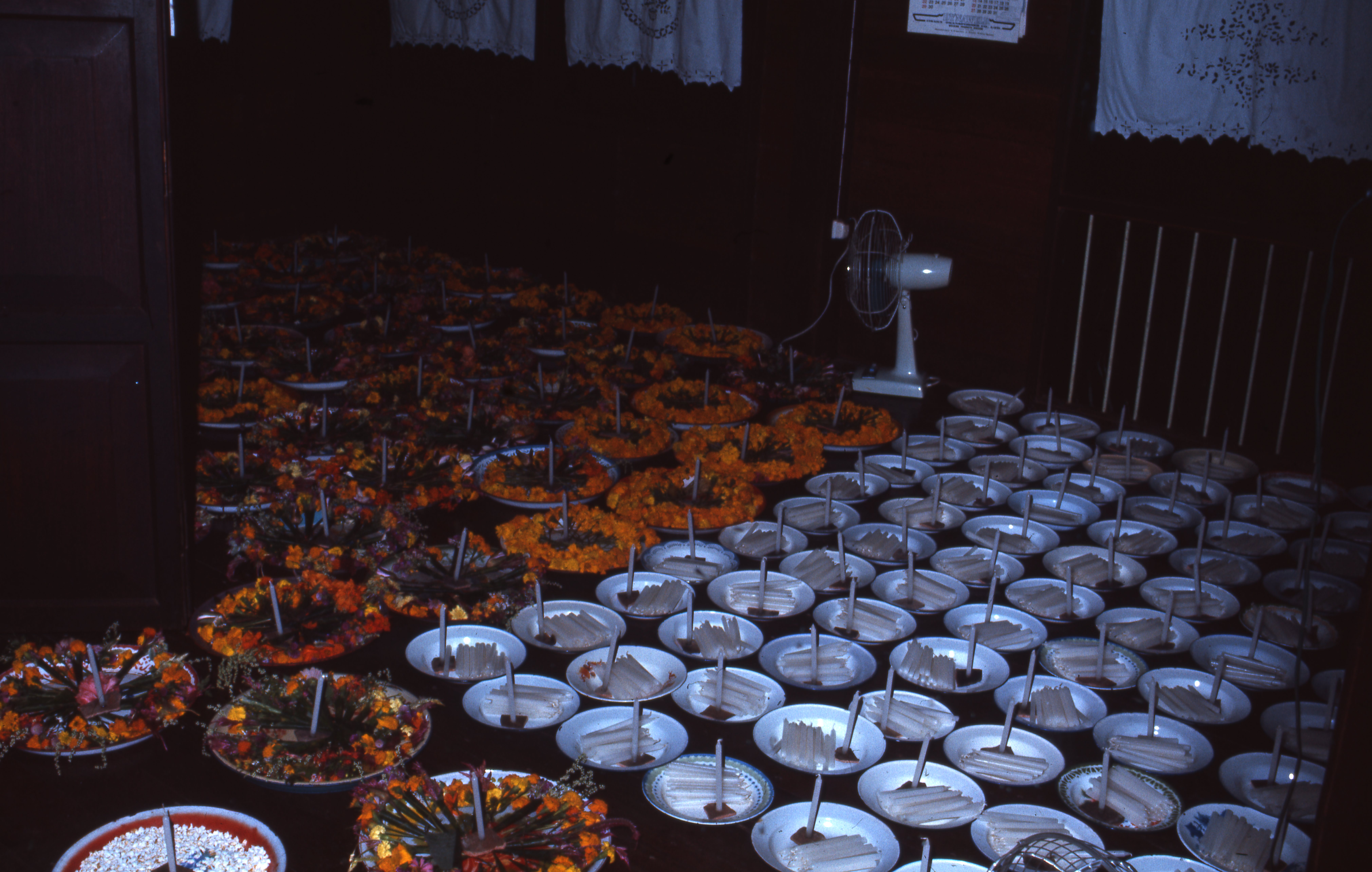 Thousand candle procession – home of sponsor, 2 photos, Amphoe Mae Sariang, Changwat Mae Hong Son, Thailand, October 1968