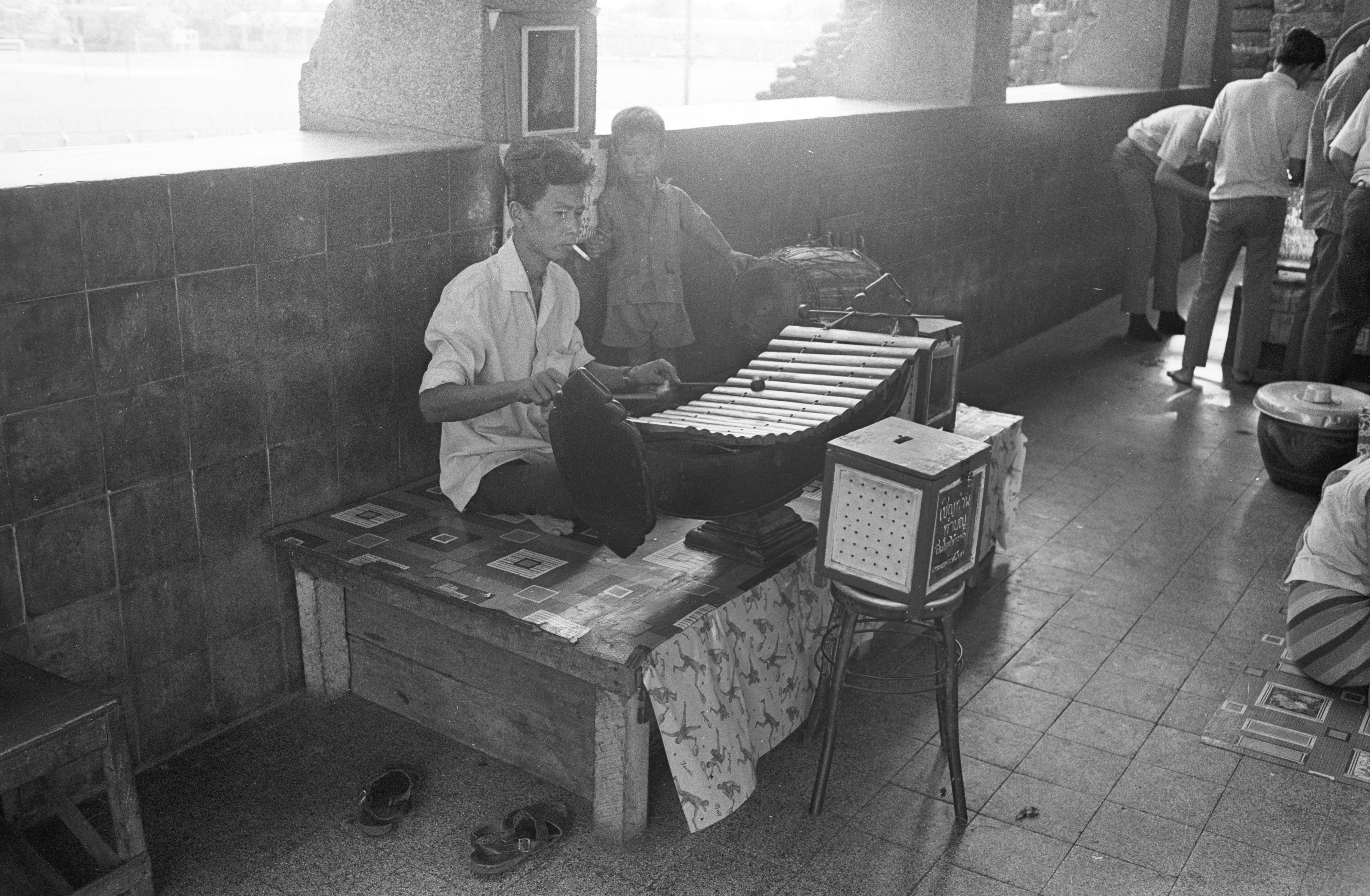Ranat (xylophone) player at shrine, Changwat Lop Buri, Thailand, April 1968