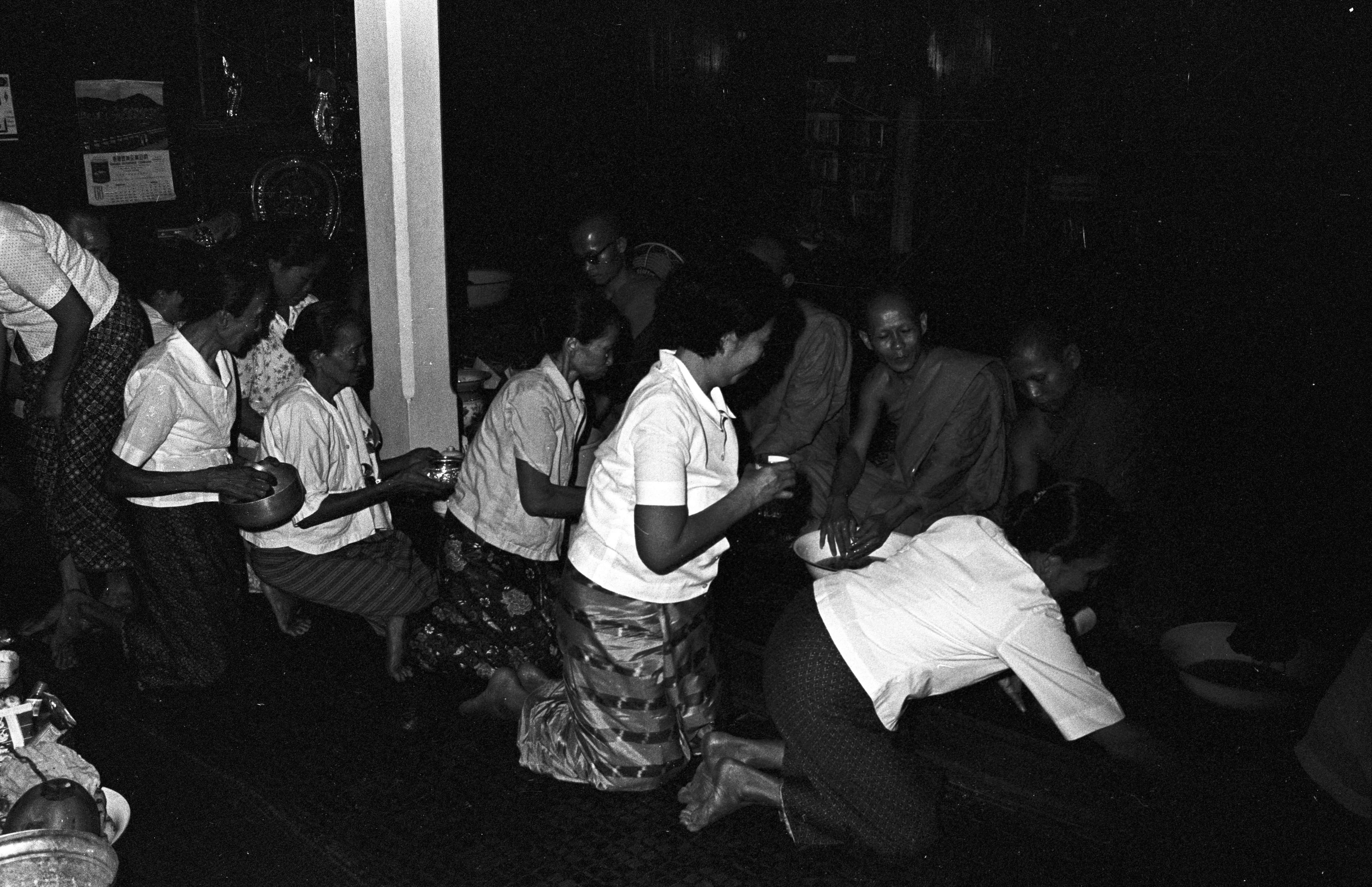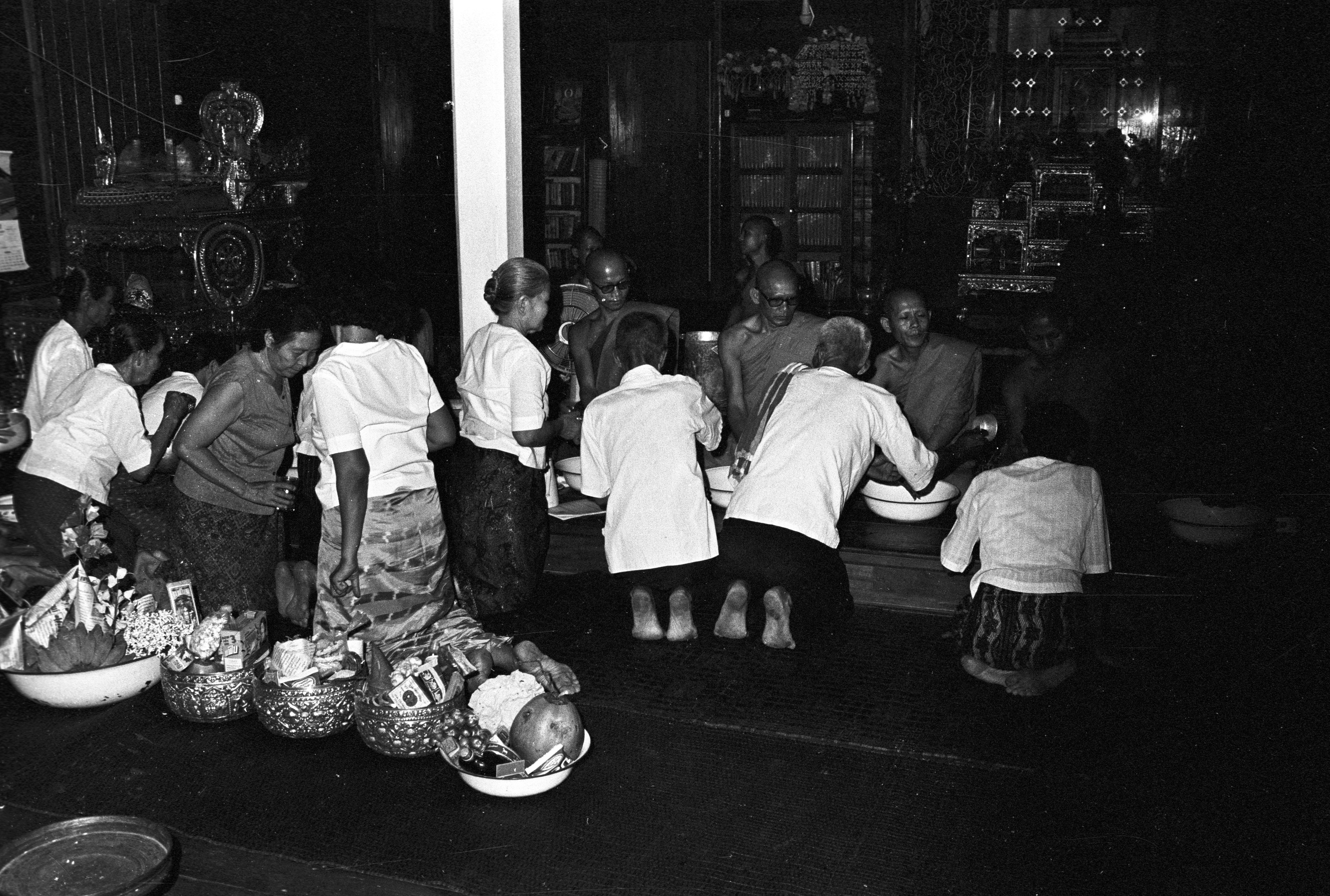 Songkran at Wat Kittiwong: ritual pouring of water on hands of monks (damhua tu cao), 8 photos, Amphoe Mae Sariang, Changwat Mae Hong Son, Thailand, April 1968
