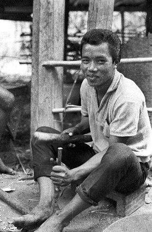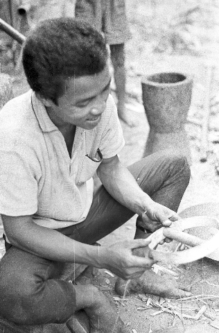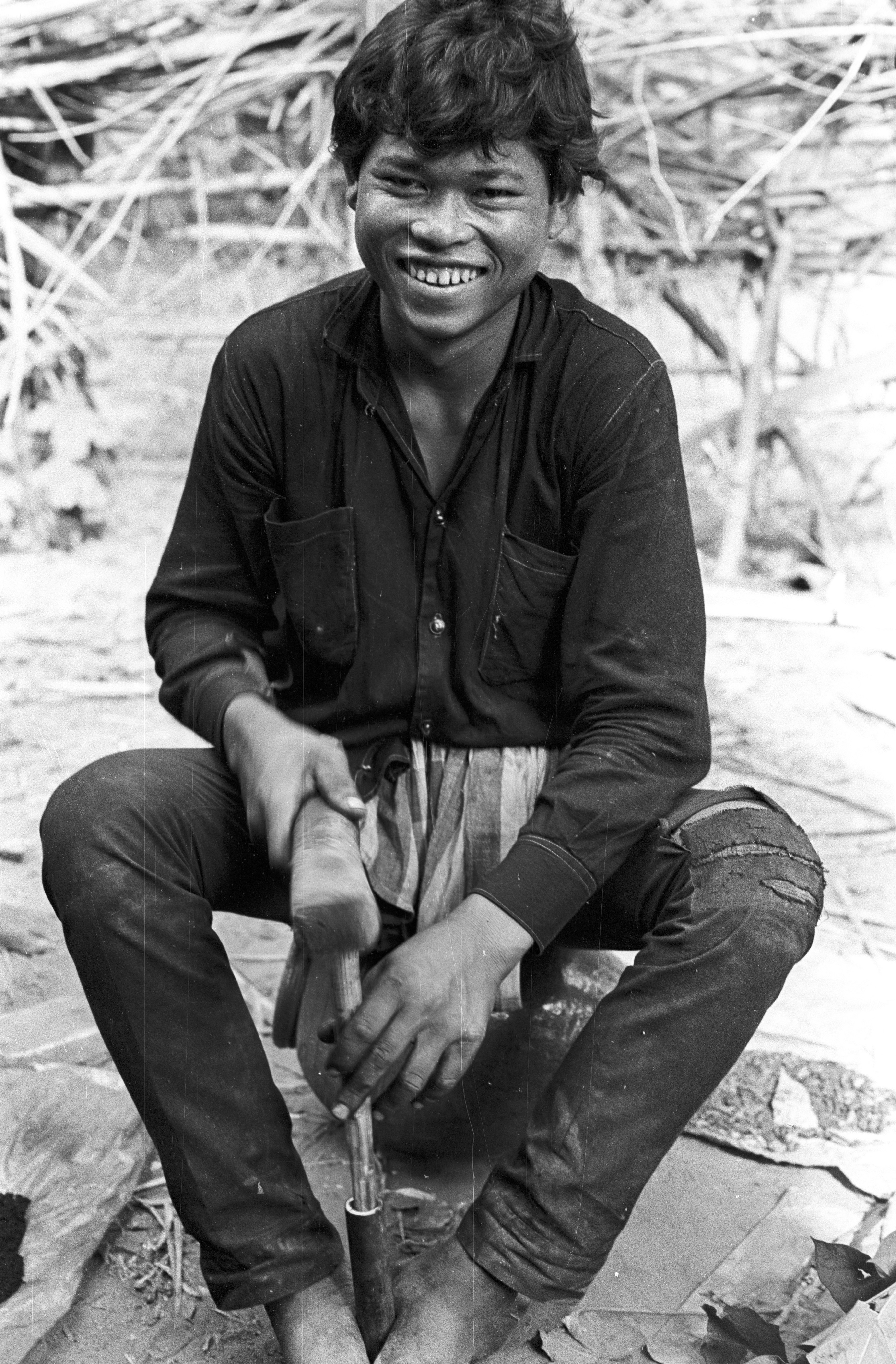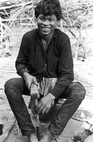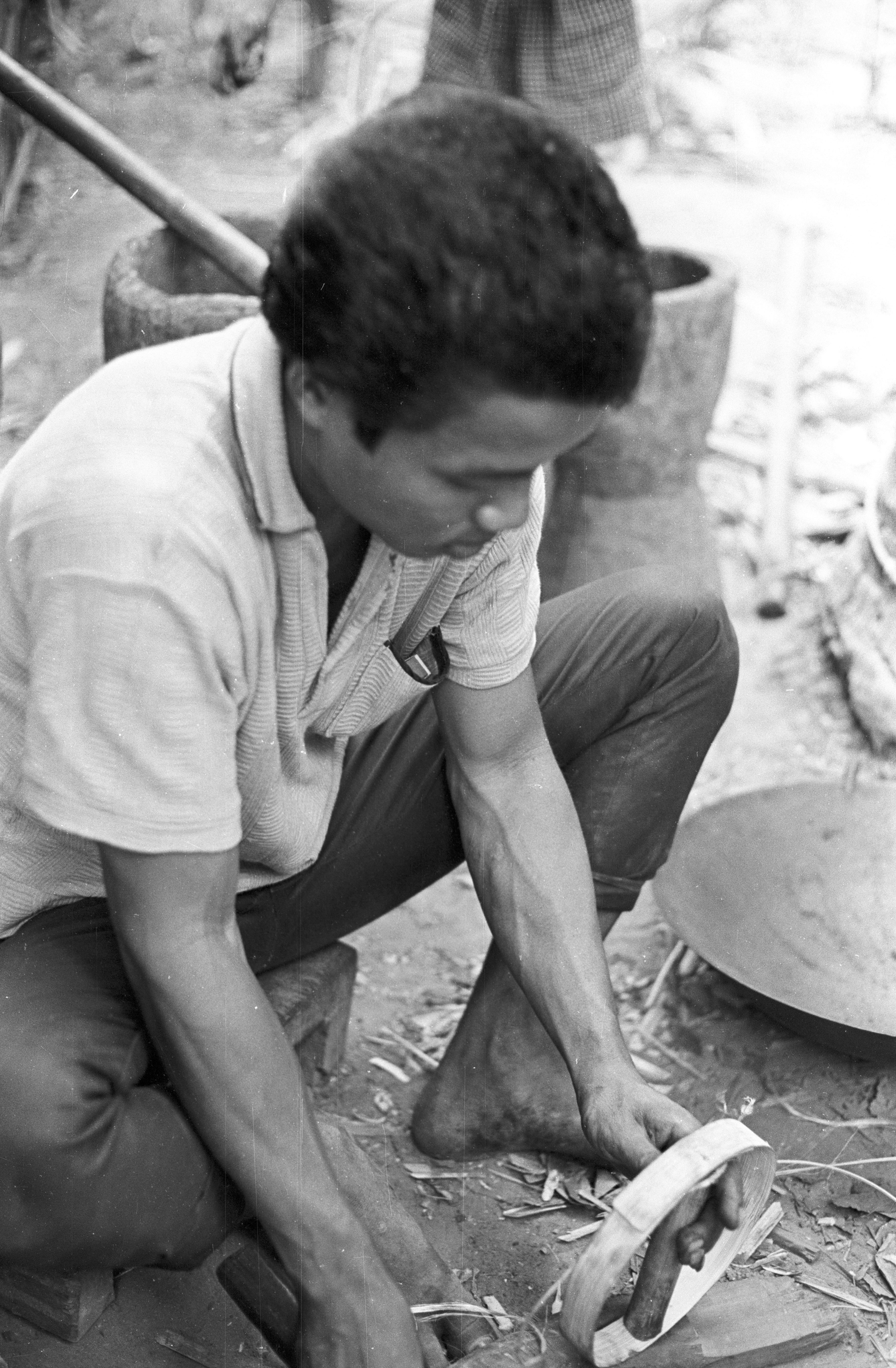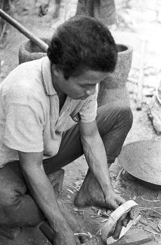 Making gunpowder for the hand-held rockets, 4 photos, Maha Sarakham Province, Thailand, November 1967