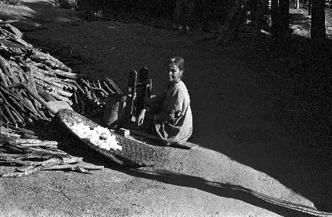 Lua village: woman ginning cotton, Ban Dong, Amphoe Mae La Noi, Changwat Mae Hong Son, Thailand, January 1968