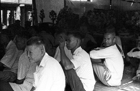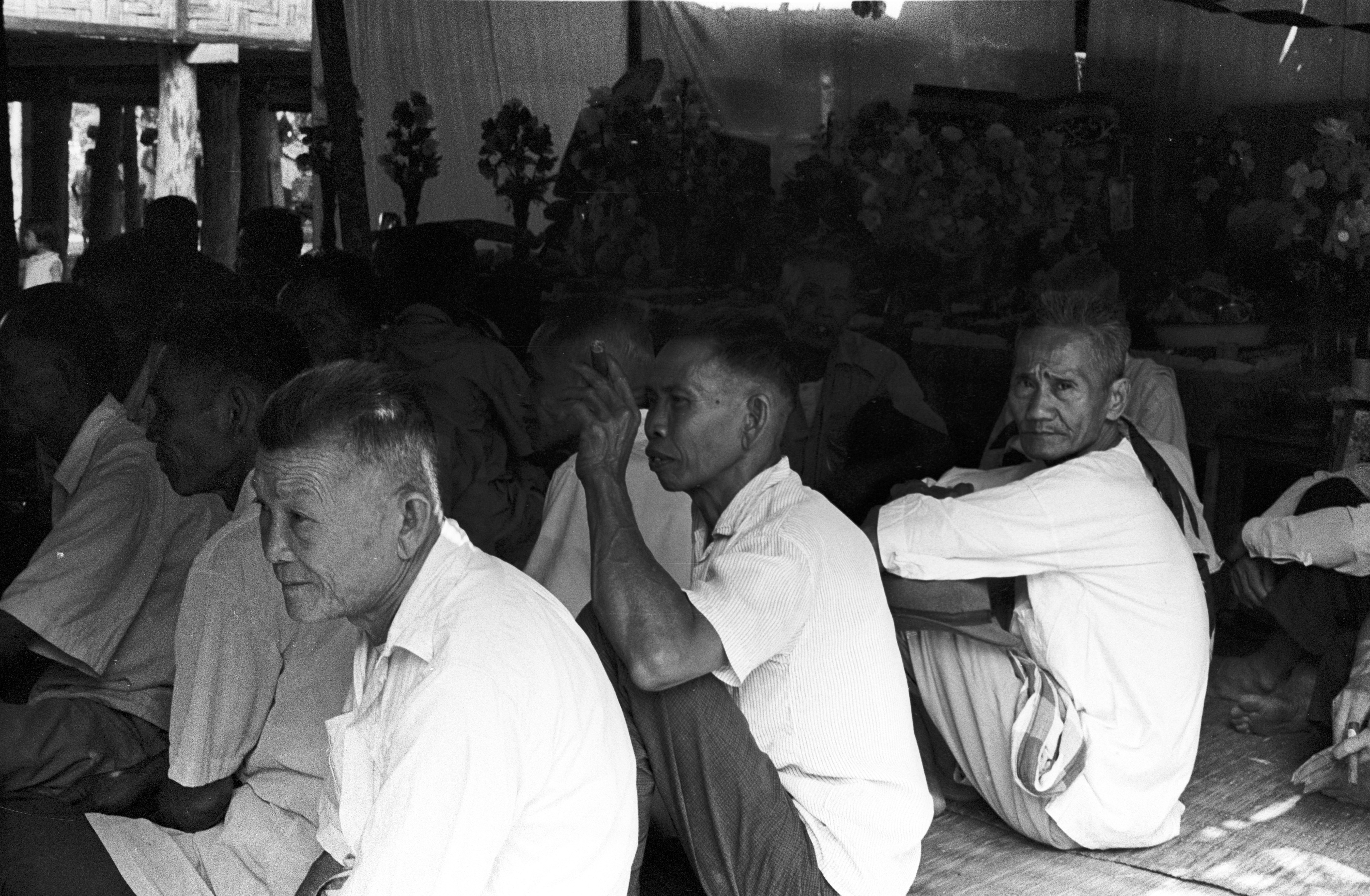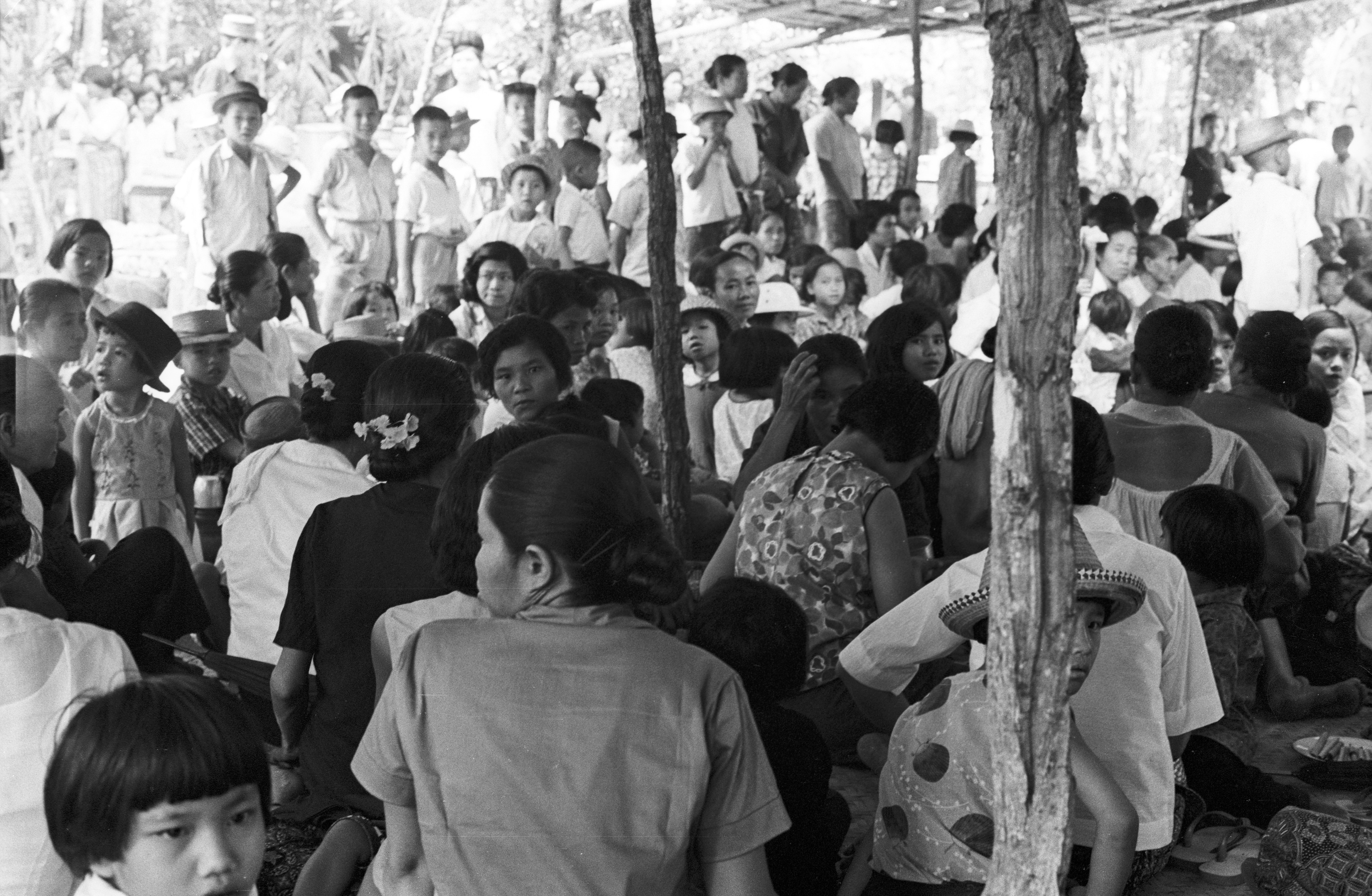 Ordination: Procession of the jewel child (hāē lūk kāēo: family gathering for pre-ordination events, 2 photos, Ban Khapuang, Amphoe Mae Sariang, Changwat Mae Hong Son, Thailand, March 1968