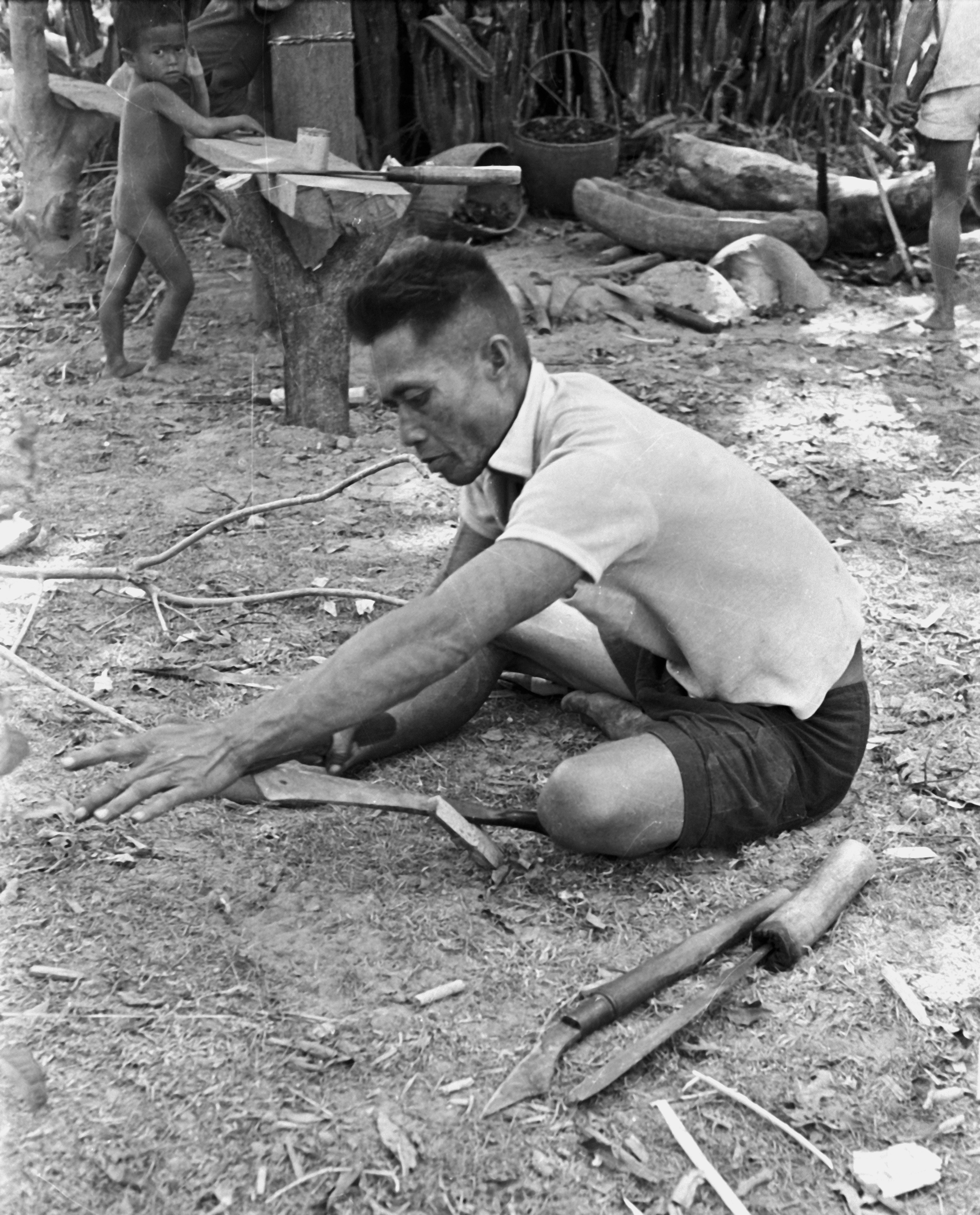 Village man making bamboo walling, Changwat Maha Sarakham, Thailand, February 1964